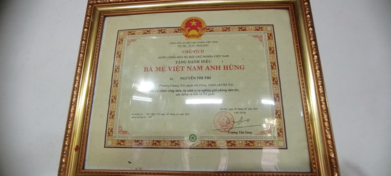 Chủ tịch tặng Danh hiệu Bà mẹ Việt Nam anh hùng cho mẹ Nguyễn Thị Thi