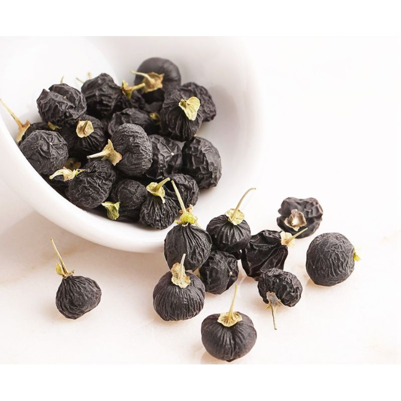 *Theo đông y thì hắc kỷ tử có vị ngọt, tính bình quy kinh can, thận có tác dụng bổ can thận, ích khí, bổ huyết, làm sáng mắt. Được sử dụng từ lâu đời trị chứng huyết hư, can thận bất túc gây đau nhức xương, mệt mỏi, di tinh, hoa mắt, chóng mặt, mắt mờ...