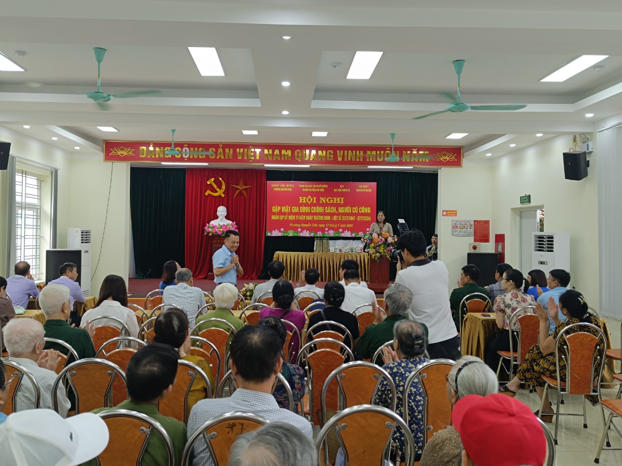 Nhân kỷ niệm 77 năm Ngày Thương binh Liệt sỹ (27/7/1947 - 27/7/2024), sáng ngày 17/7 tại UBND Phường Nguyễn Trãi, Hà Đông, ông Trương Minh Tân - Giám đốc Trung tâm truyền thông Đông y, Ông Nguyễn Tiến Phúc - phó chủ tịch hội Đông y thành phố Hà Nội, bác sĩ CKI Chu Hải Đăng- Trưởng phòng chuyên môn Hội Đông y TP Hà Nội, Bs Bùi Thị Phương Hoa - Trưởng phòng khám chuyên khoa y học cổ truyền cùng Đoàn công tác của Hội đã đến thăm khám và trao các phần quà tặng các Mẹ Việt Nam Anh hùng, gia đình chính sách, người có công với cách mạng. Cùng dự có Lãnh đaọ Đảng ủy- UBND- UB MTTQ Phường Nguyễn Trãi; Cán bộ Trung tâm đào tạo và bồi dưỡng nghiệp vụ Cảnh sát biển; Đại diện Hệ 5 Học viện chính trị cùng lãnh đạo Trung tâm y tế phường, phòng y tế, các y bác sĩ, các trưởng phó ban, cán bộ UBND Phường.