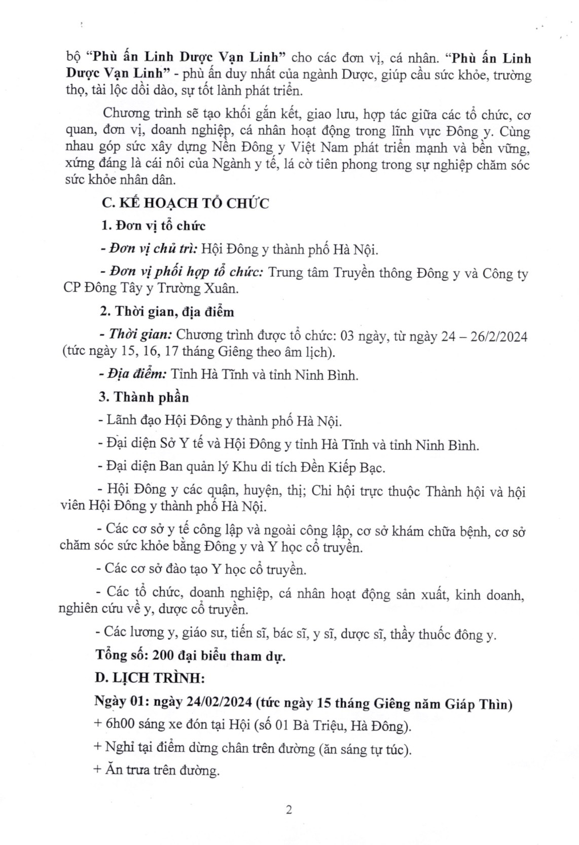 Mùa xuân mới- Xuân Giáp Thìn 2024 cũng là mở đầu một chặng đường mới của nền Đông y Việt Nam khi luật khám chữa bệnh 2023 chính thức được thực thi. Với mong muốn khởi động 2024 được thuận lợi, phát triển và đạt nhiều thành tựu của nền Đông y, Hội đông y Thành phố Hà Nội xây dựng kế hoạch tổ chức chương trình: " HÀNH TRÌNH VỀ NGUỒN " và hội thảo " HƯỚNG MỞ Y HỌC CỔ TRUYỀN NĂM 2024"