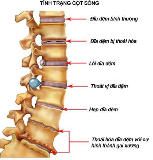 Bệnh thoát vị đĩa đệm và gai cột sống: Tổn thương đĩa đệm và cột sống là biến chứng thường gặp ở bệnh nhân thoái hóa cột sống lưng.